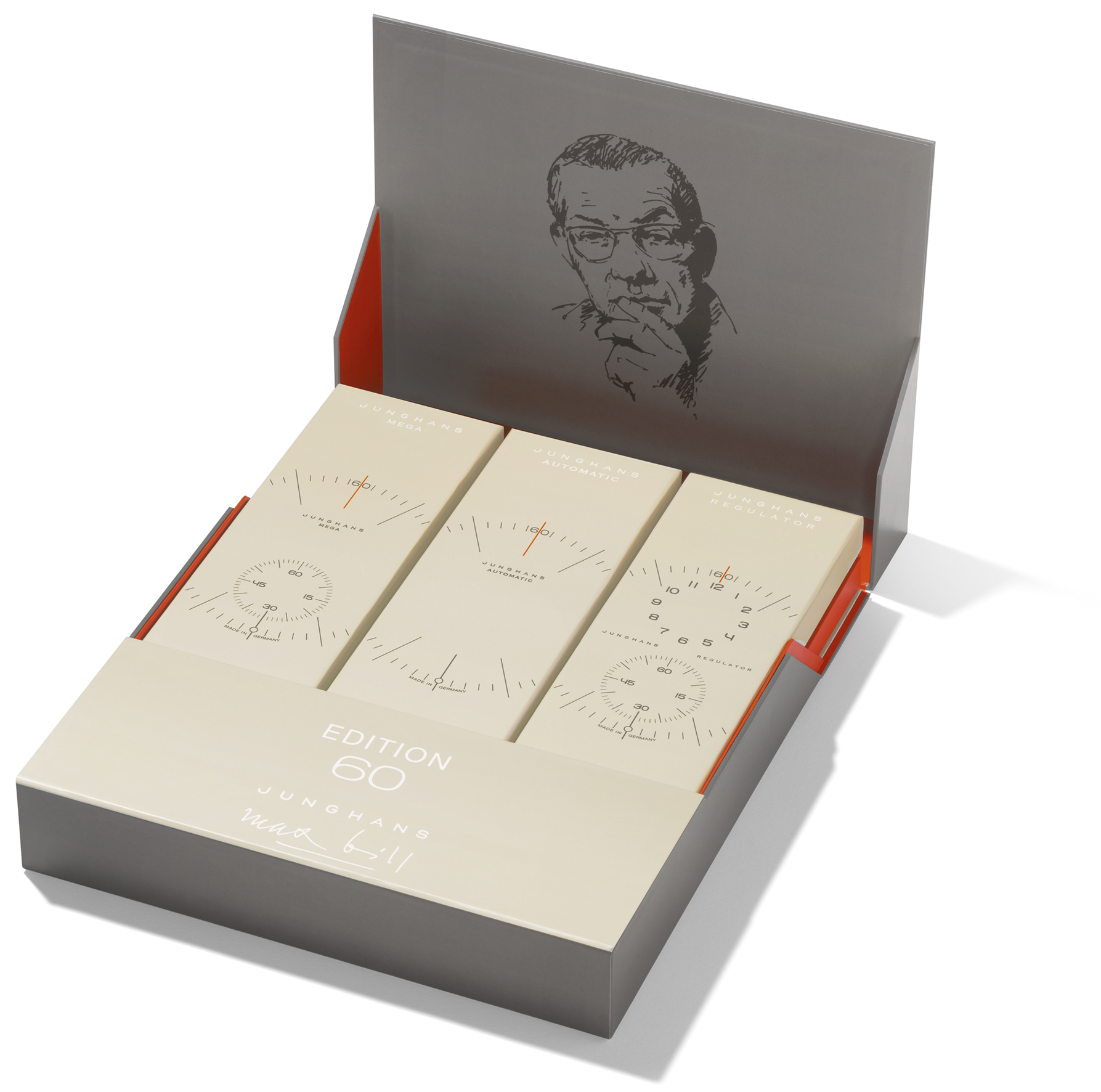 Three Junghans Max Bill 60th Anniversary models showing how a single Bauhaus design can evolve while preserving its original clarity and proportion.